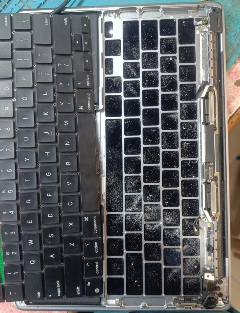 A client submitted a MacBook Pro (13-inch, M1, 2020) due to multiple unresponsive keys following a liquid spill. They specifically requested an “only keyboard change” to minimize cost. The critical need was speed, as the client’s work depends on the machine’s reliable function.